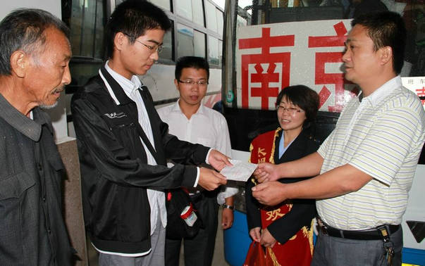 太湖分公司領(lǐng)導(dǎo)得知姐弟倆的情況后,隨即與考生所在鄉(xiāng)村取得聯(lián)系。決定從公司緊張的辦公經(jīng)費(fèi)中解決姐弟倆大學(xué)期間的路費(fèi)。9月10日是弟弟陳先義報(bào)道的日子,太湖分公司領(lǐng)導(dǎo)曹全龍同志代表太湖分公司全體汽運(yùn)人親手將兩張?zhí)聊暇┑能嚻彼偷疥愊攘x同學(xué)手中,并鼓勵(lì)他們樹立信心,正確面對(duì)暫時(shí)的困難,好好學(xué)習(xí),以過硬的本領(lǐng)回報(bào)社會(huì)。受助大學(xué)生陳先義對(duì)太湖分公司的無償援助表達(dá)了感激之情。