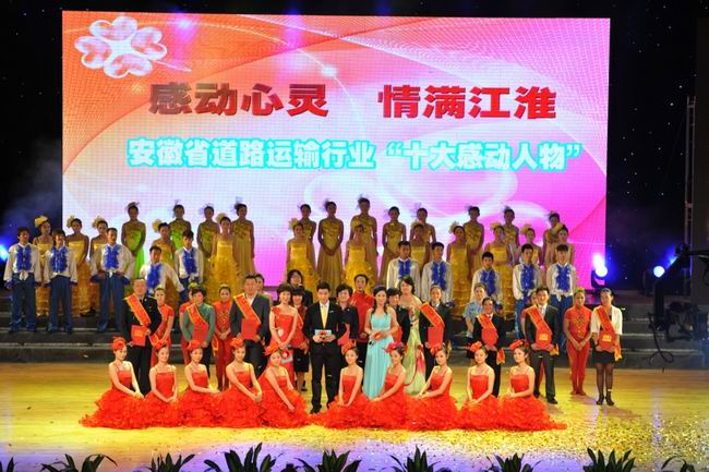 會(huì)議期間舉辦了"十一五"期間全省道路運(yùn)輸行業(yè)"十大感動(dòng)人物"頒獎(jiǎng)晚會(huì),運(yùn)用視頻短片等形式對(duì)獲獎(jiǎng)?wù)叩南冗M(jìn)事跡進(jìn)行了宣揚(yáng),F(xiàn)場(chǎng)群眾觀(guān)看著大屏幕上獲獎(jiǎng)?wù)叩母腥耸论E,聆聽(tīng)著獲獎(jiǎng)?wù)叩臉銓?shí)話(huà)語(yǔ),一次次用雷鳴般的掌聲表達(dá)了敬佩和感動(dòng)之情。他們的典型事跡,集中展示了道路運(yùn)輸人的風(fēng)采,唱響了時(shí)代的主旋律,在群眾中引起了強(qiáng)烈的共鳴。省交通運(yùn)輸廳梅勁廳長(zhǎng)、丁慶領(lǐng)副廳長(zhǎng)及滁州市相關(guān)領(lǐng)導(dǎo)為"十大感動(dòng)人物"頒發(fā)了獎(jiǎng)杯。
