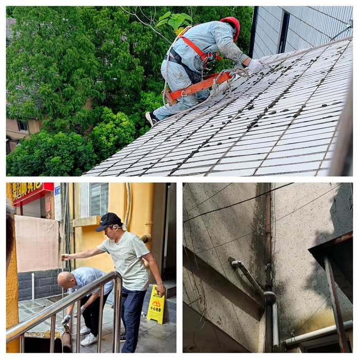8月安全巡查期間,綜合服務(wù)中心安全科針對紡織南路7號(hào)樓及周邊區(qū)域開展專項(xiàng)隱患排查,發(fā)現(xiàn)兩處亟待處理的安全問題:一是7號(hào)樓公廁外側(cè)落水管多處破裂,導(dǎo)致雨水滲漏至路面并形成大面積積水,不僅影響市容環(huán)境,更對過往車輛及行人構(gòu)成潛在風(fēng)險(xiǎn);二是慶達(dá)綜合樓頂層臨街面瓷磚多處開裂,縫隙中滋生的灌木根系已侵入建筑結(jié)構(gòu),存在高空墜物隱患,嚴(yán)重威脅公共安全。
